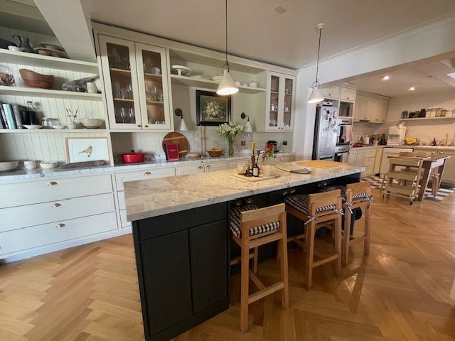 Hall de entrada, living y comedor incoorporado, isla para cocinar, más una sala de estar.