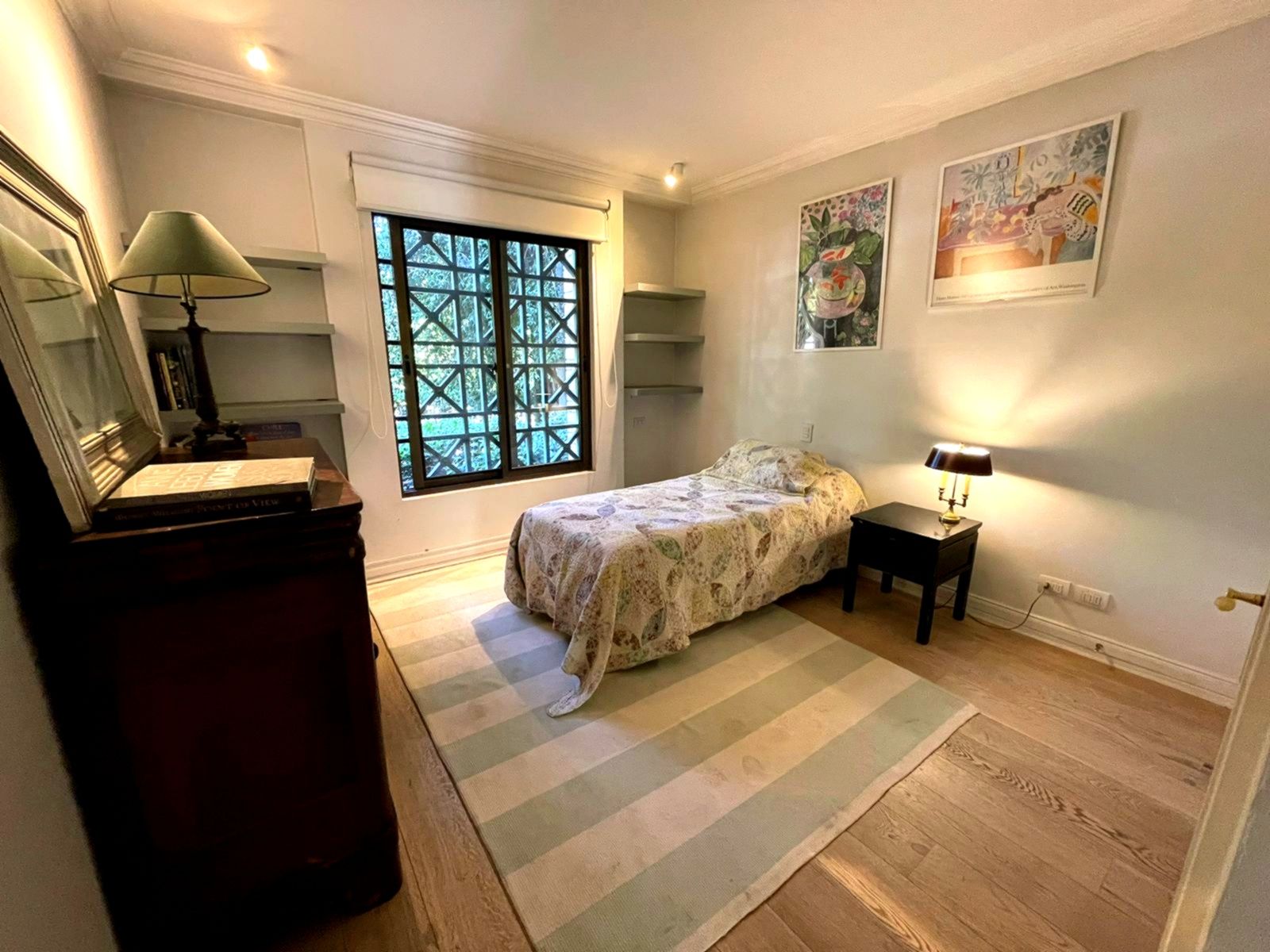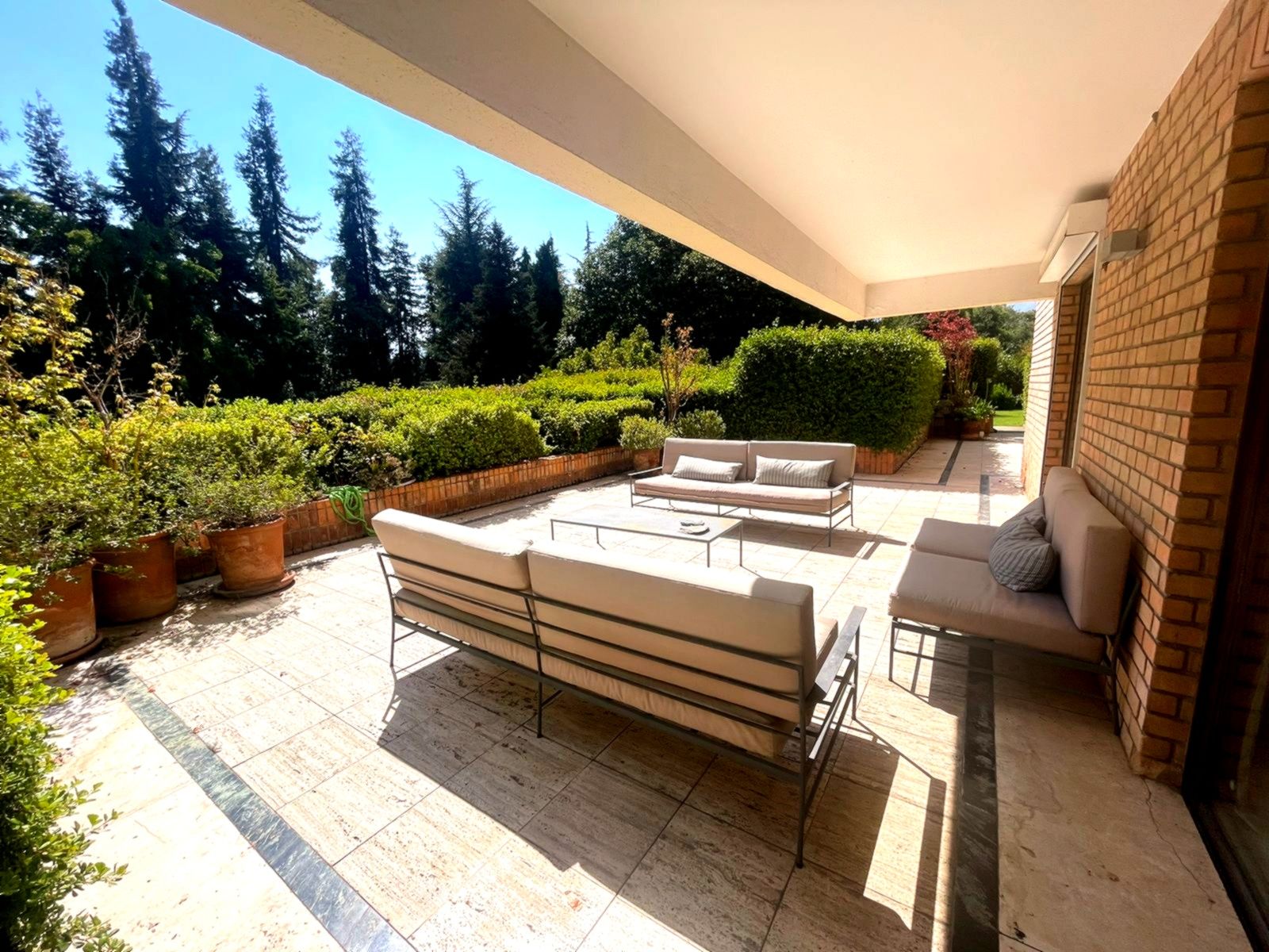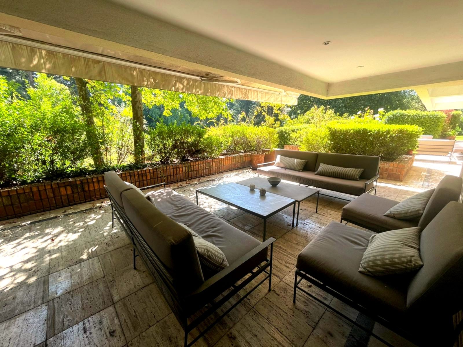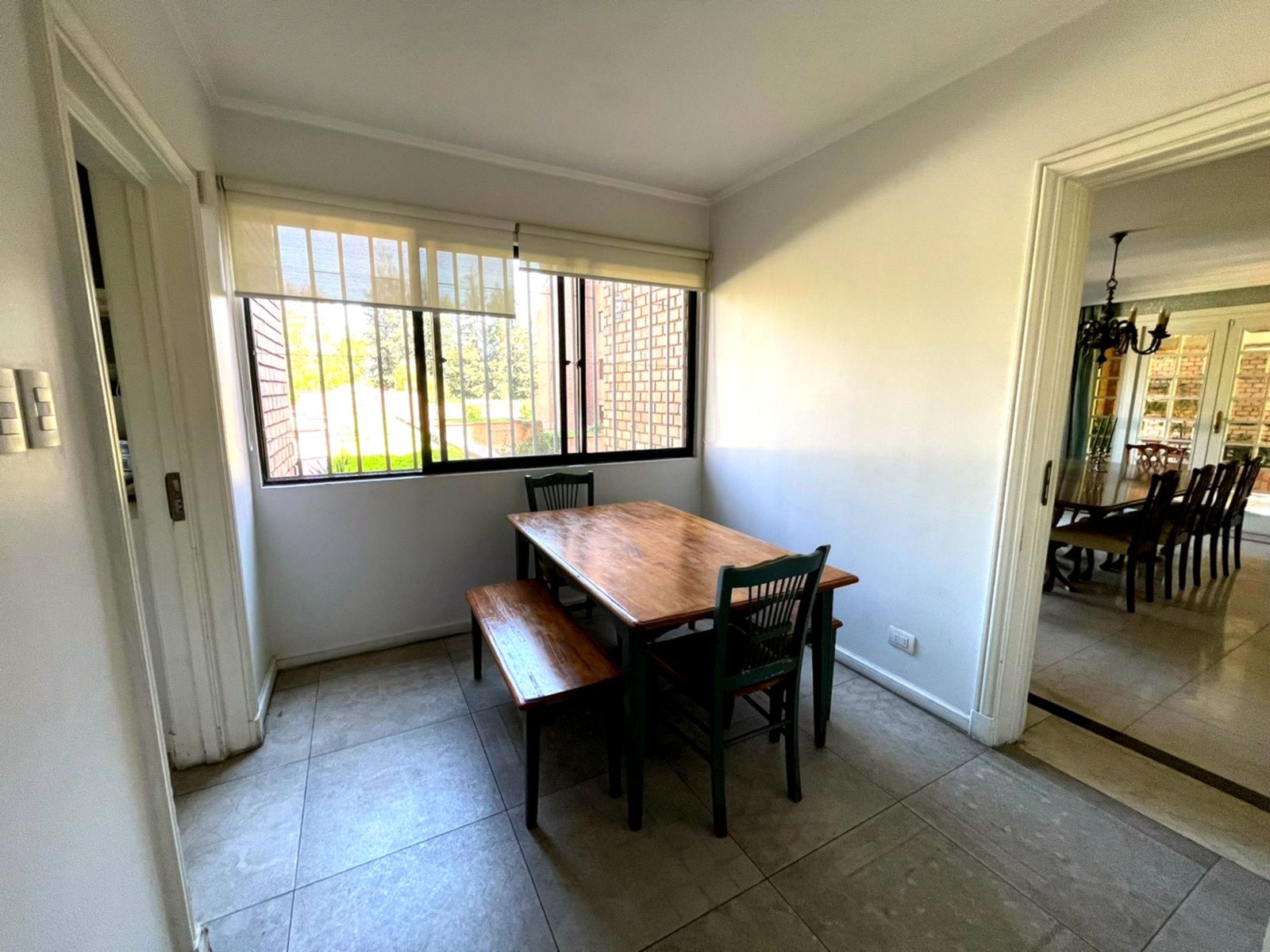 Edifiicio de lujo construído el año 1993, inserto en un maravilloso parque. Departamento muy luminoso en un primer piso con variadas áreas de terrazas con sombra y alternativas con sol, según las distintas estaciones del año. Palier de entrada con ascensor privado. Amplio hall de acceso iluminado y con el parque de fondo. Amplio y luminoso living, con piso de mármol y salida a una gran terraza con sector de comedor y living exterior. Comedor independiente también con piso de mármol y salida al comedor externo en la terraza. Amplia cocina completamente equipada y con comedor de diario independiente. Sector de servicios cuenta con dos dormitorios y un baño. Loggia. Amplio dormitorio principal en suite con walk- in closet. Terraza y jardín privado con pileta de agua. Dormitorio secundario en suite. Y otros 2 dormitorios que comparten un baño y salida a terraza. Sala de estar con salida a terraza. Baño de visitas. Ascensor de servicio. Calefacción central. Persianas eléctricas en dormitorios. 3 Estacionamientos 1 Bodega Amplios jardines y senderos para caminatas. Piscina con reposeras. Cancha de tenis. Estacionamientos de visita. Seguridad 24/7 con sofisticado sistema de vigilancia.