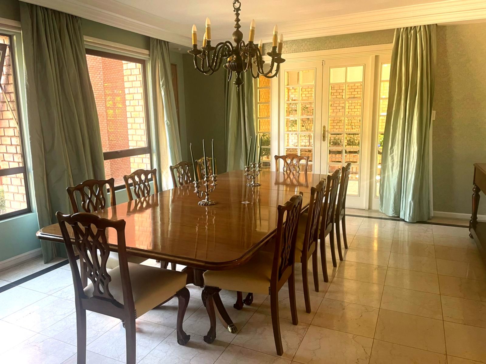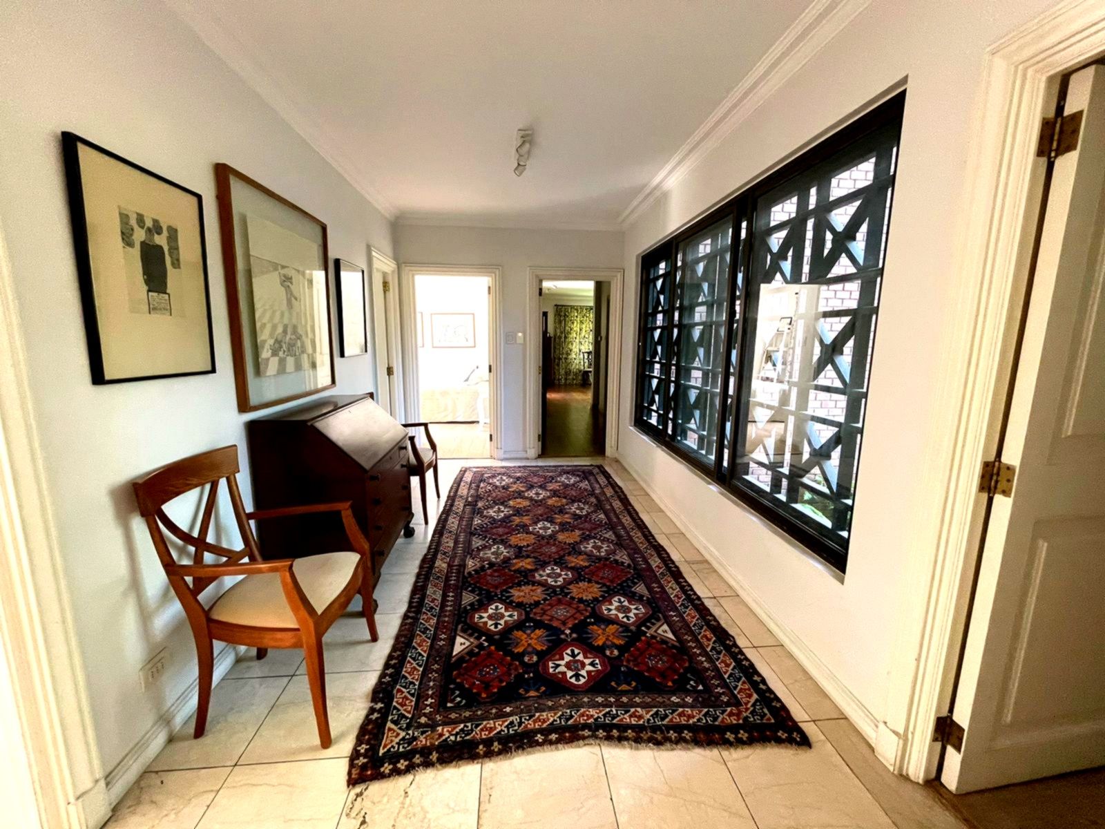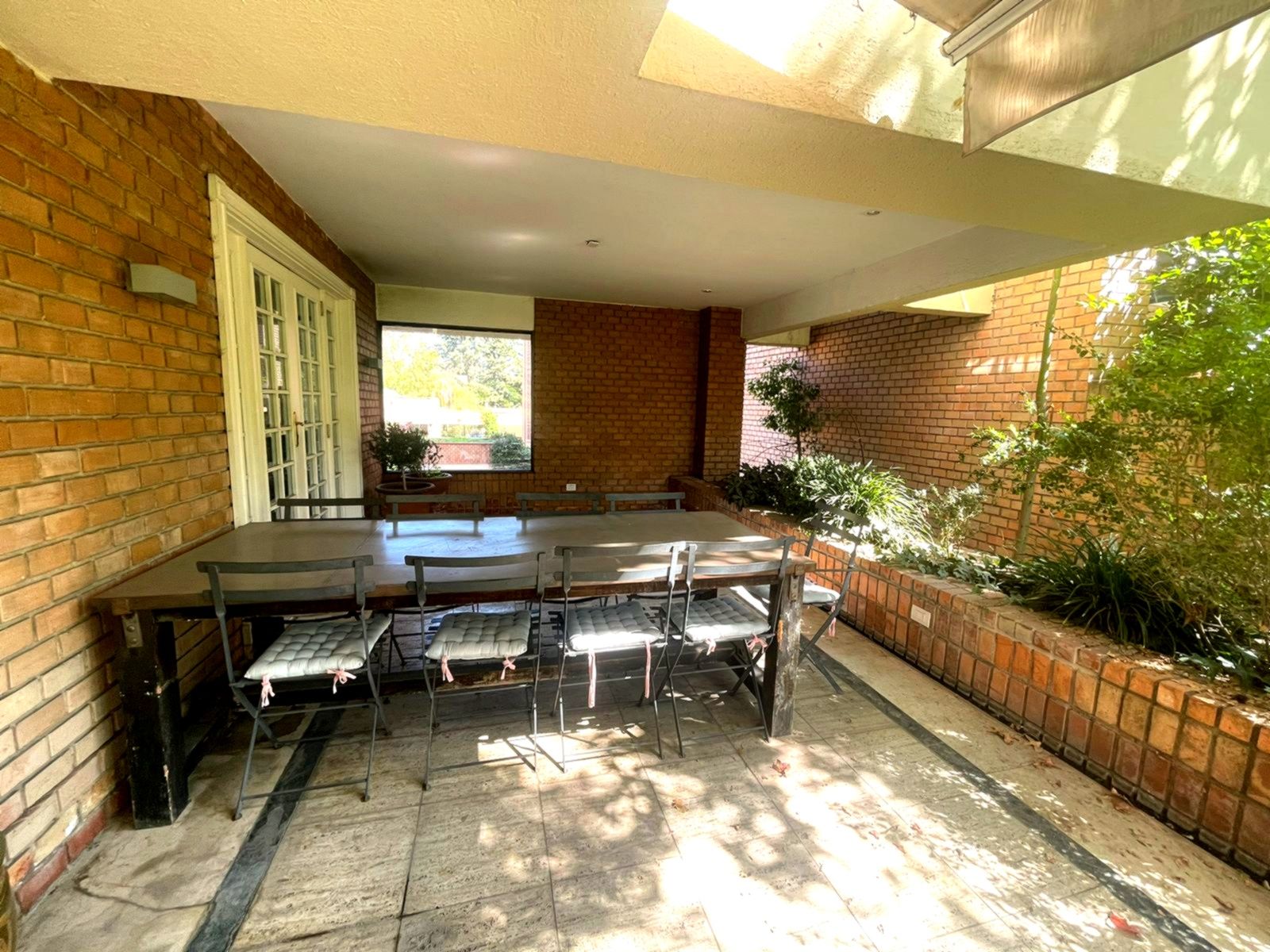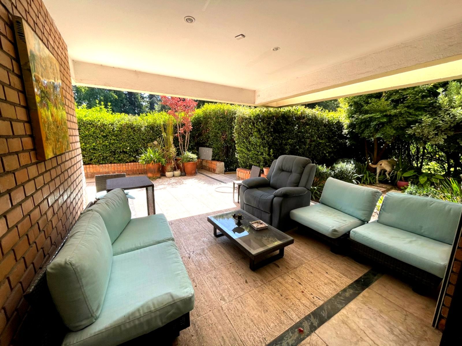 Edifiicio de lujo construído el año 1993, inserto en un maravilloso parque. Departamento muy luminoso en un primer piso con variadas áreas de terrazas con sombra y alternativas con sol, según las distintas estaciones del año. Palier de entrada con ascensor privado. Amplio hall de acceso iluminado y con el parque de fondo. Amplio y luminoso living, con piso de mármol y salida a una gran terraza con sector de comedor y living exterior. Comedor independiente también con piso de mármol y salida al comedor externo en la terraza. Amplia cocina completamente equipada y con comedor de diario independiente. Sector de servicios cuenta con dos dormitorios y un baño. Loggia. Amplio dormitorio principal en suite con walk- in closet. Terraza y jardín privado con pileta de agua. Dormitorio secundario en suite. Y otros 2 dormitorios que comparten un baño y salida a terraza. Sala de estar con salida a terraza. Baño de visitas. Ascensor de servicio. Calefacción central. Persianas eléctricas en dormitorios. 3 Estacionamientos 1 Bodega Amplios jardines y senderos para caminatas. Piscina con reposeras. Cancha de tenis. Estacionamientos de visita. Seguridad 24/7 con sofisticado sistema de vigilancia.